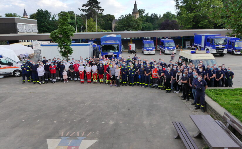 Gestern gedachten die Hilfskräfte von u. a. Feuerwehr, THW, DRK und Polizei den Opfern der Flutkatastrophe.