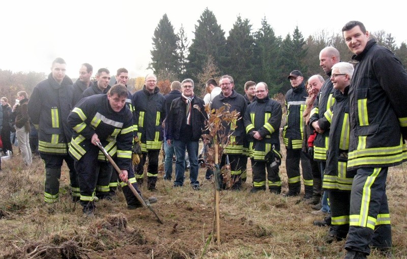 Mit ein paar Spatenstichen pflanzten die Feuerwehrkameraden um Sinzigs stellvertretenden Löschzugführer Harald Hornemann und Stadtwehrleiter Andreas Braun eigenhändig den jungen Baum in dem Waldstück auf dem Mühlenberg. Glückwünsche kamen von Bürgermeister Kroeger, der sich freute so viele Feuerwehrleute beim Baumpflanztag begrüßen zu können. Mit dem Ehrenbaum soll das große Engagement der Feuerwehrangehörigen innerhalb der 125 Jahre und darüber hinaus in der Zukunft gewürdigt werden.