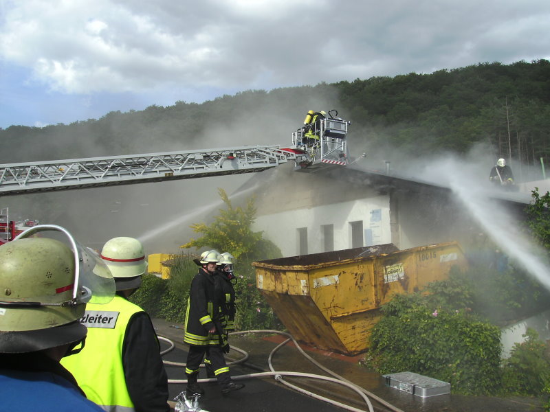 Nachdem ein Notruf bei der Polizei Remagen um 16.55 Uhr eingegangen war, wurde der Löschzug Bad Bodendorf am Nachmittag zu einem Brand eines Einfamilienhauses im Sebastianusweg alarmiert. Das Feuer war im Dachbereich ausgebrochen und breitete sich von dort zunächst in der Dachhaut weiter fort. Zu diesem Zeitpunkt wurden Schweißarbeiten am Dach im Rahmen der Renovierung des Hauses durchgeführt. So befanden sich bei Eintreffen der ersten Feuerwehrkräfte mit dem Tanklöschfahrzeug aus Bad Bodendorf glücklicherweise auch keine Personen mehr im Brandbereich. Den Einzugstermin wird die Familie jetzt aber wohl doch verschieben müssen.